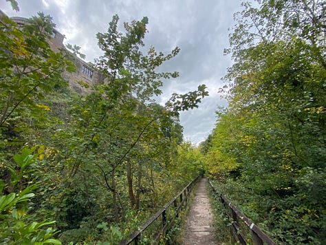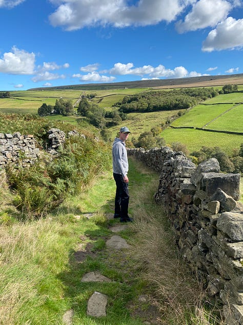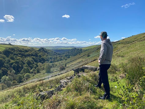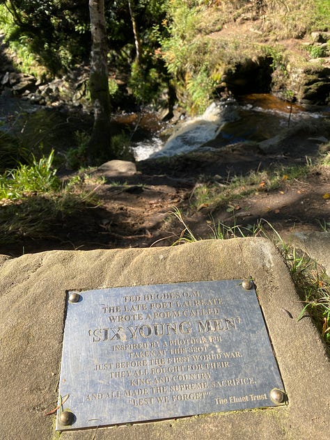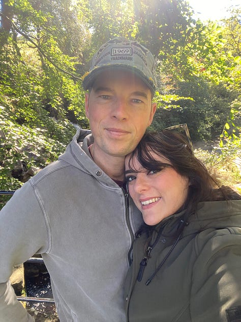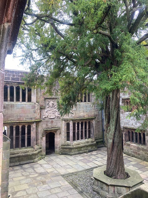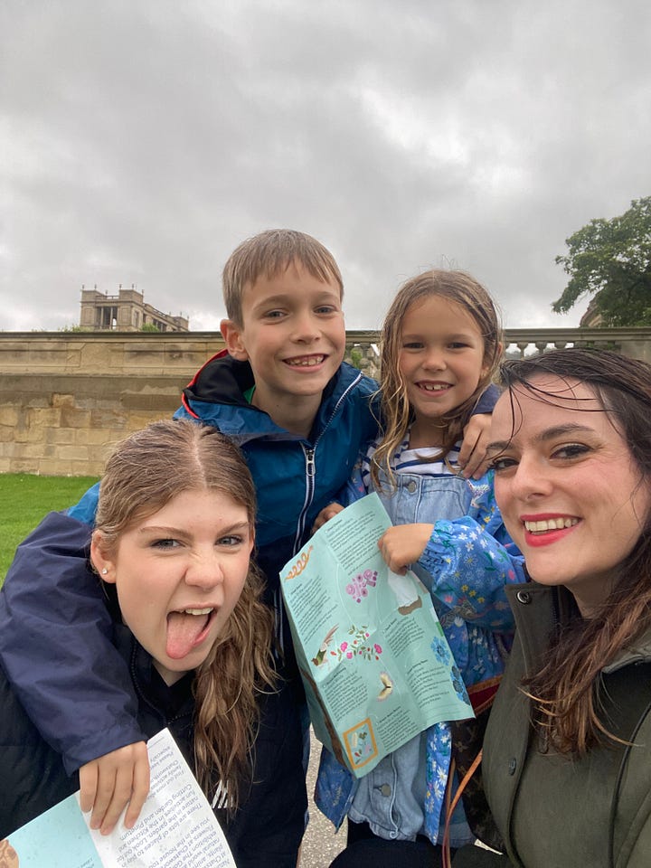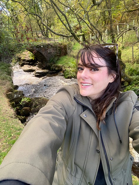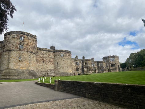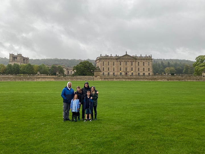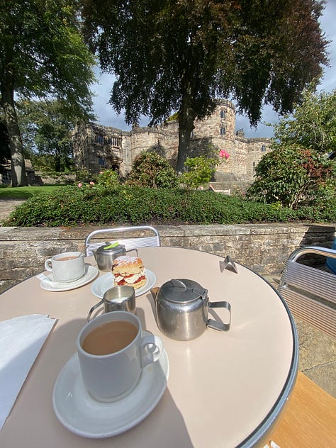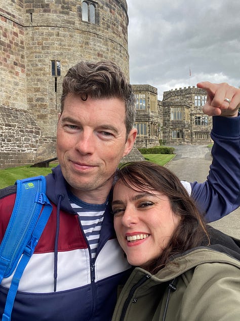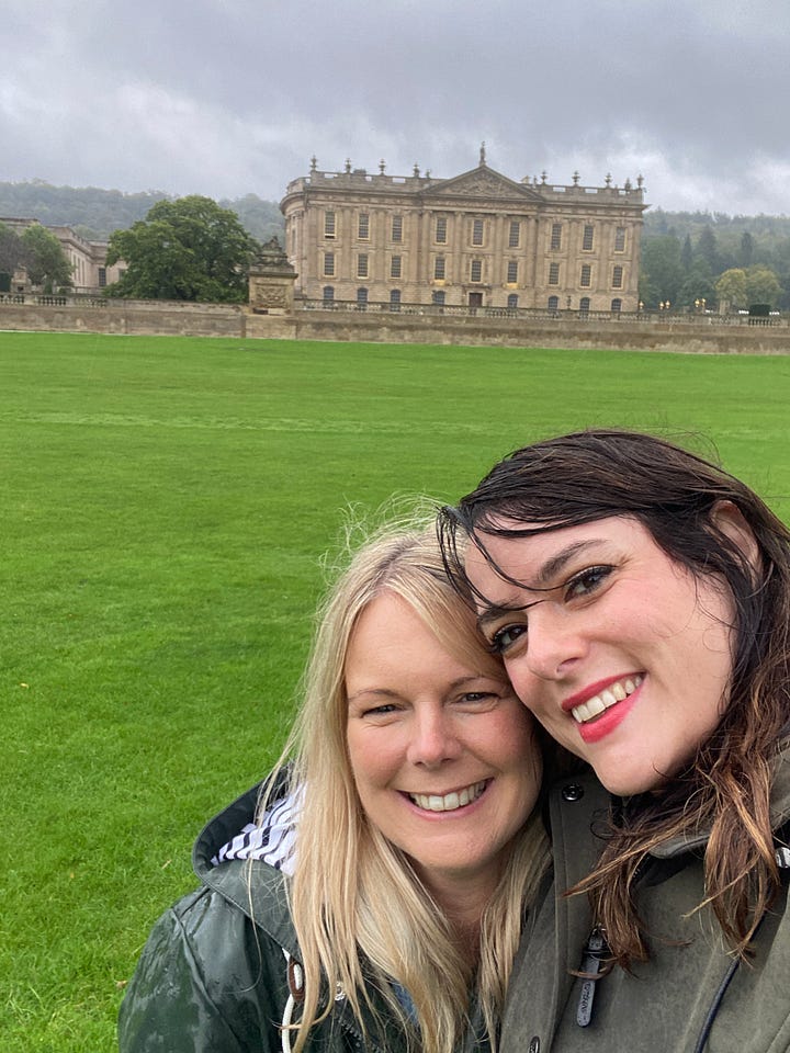 In the meantime, here are some images of some little day trips in the past couple of weeks: Michael’s 47th birthday with my in-laws; local walk (in the Todmorden hills near our house); leopard dress (didn’t get good pic with Michael but wore this for my anniversary brunch with Michael – and my cousin Pam and her husband came, too, which was amazing); Kirkstall Abbey (near my Grammy’s house with my Uncle Steve who is over from Florida); Chatsworth House (on the very wet day The Queen’s Reading Room literary festival was happening and I hadn’t even heard of it – Richard Osman, Jojo Moyes, Helen Fielding, Celia Imrie, Sheila Crowley and others were in the same vicinity as me for the first time ever and I saw Dominic West not once but twice from a distance with his wife. He’s still very handsome IRL, but also smaller than I imagined. And I saw Lord Billington, who is the current Duke’s son who runs the estate – also the closest I’ve been to aristocracy); Lumb Falls (just a local walk between Hebden Bridge and Keighley with a connection to Sylvia Plath’s husband Ted Hughes); and Skipton Castle (this was actually brilliant – my brother-in-law is an architect in Skipton but Michael and I had never actually been – besides driving through).